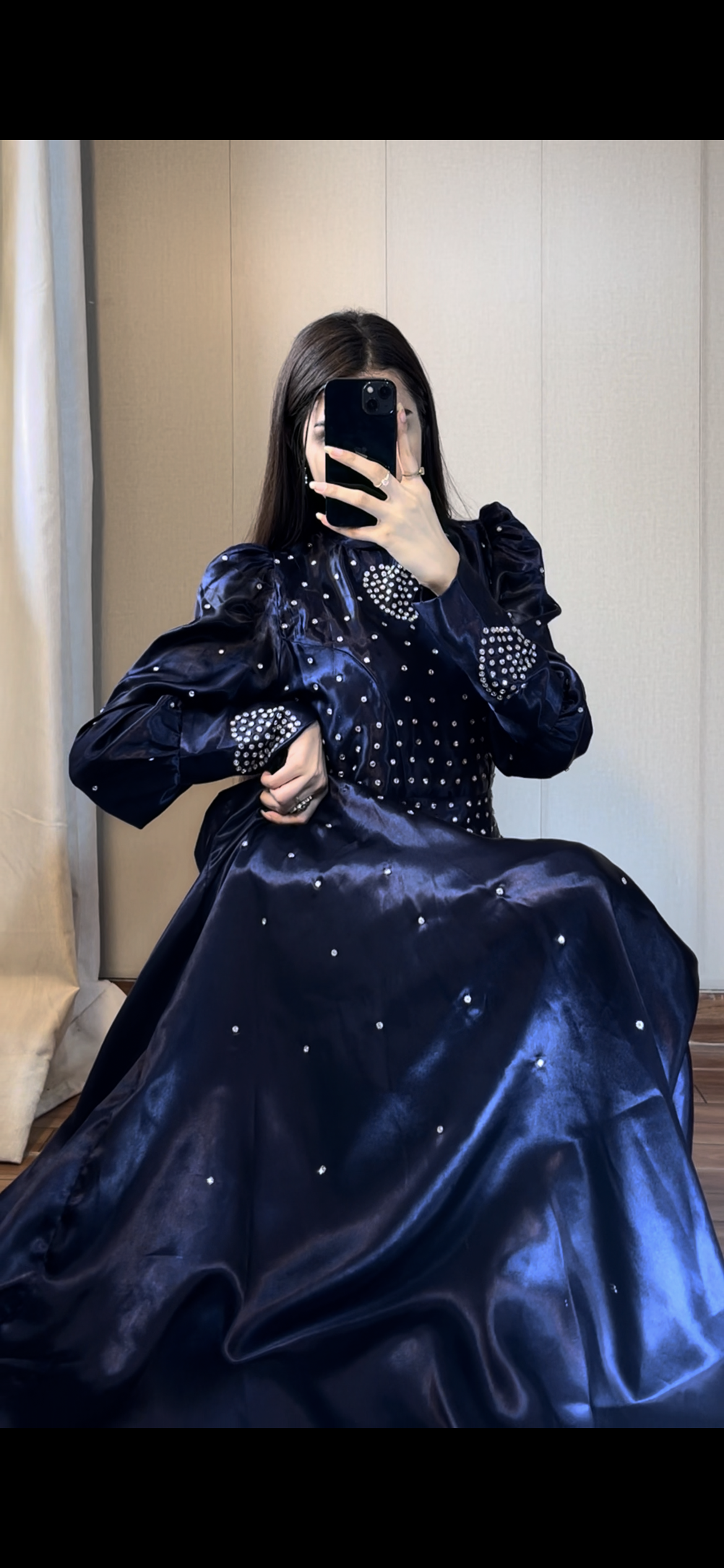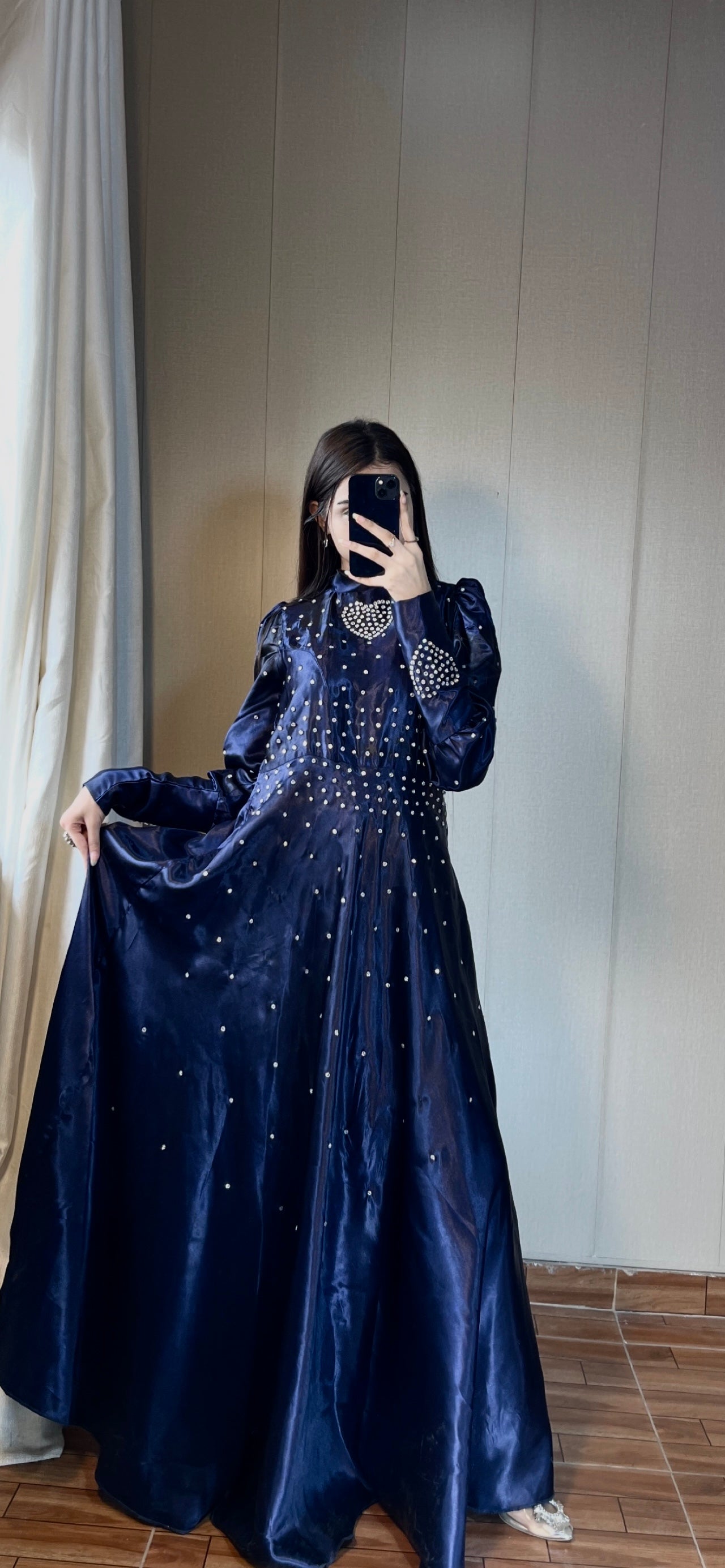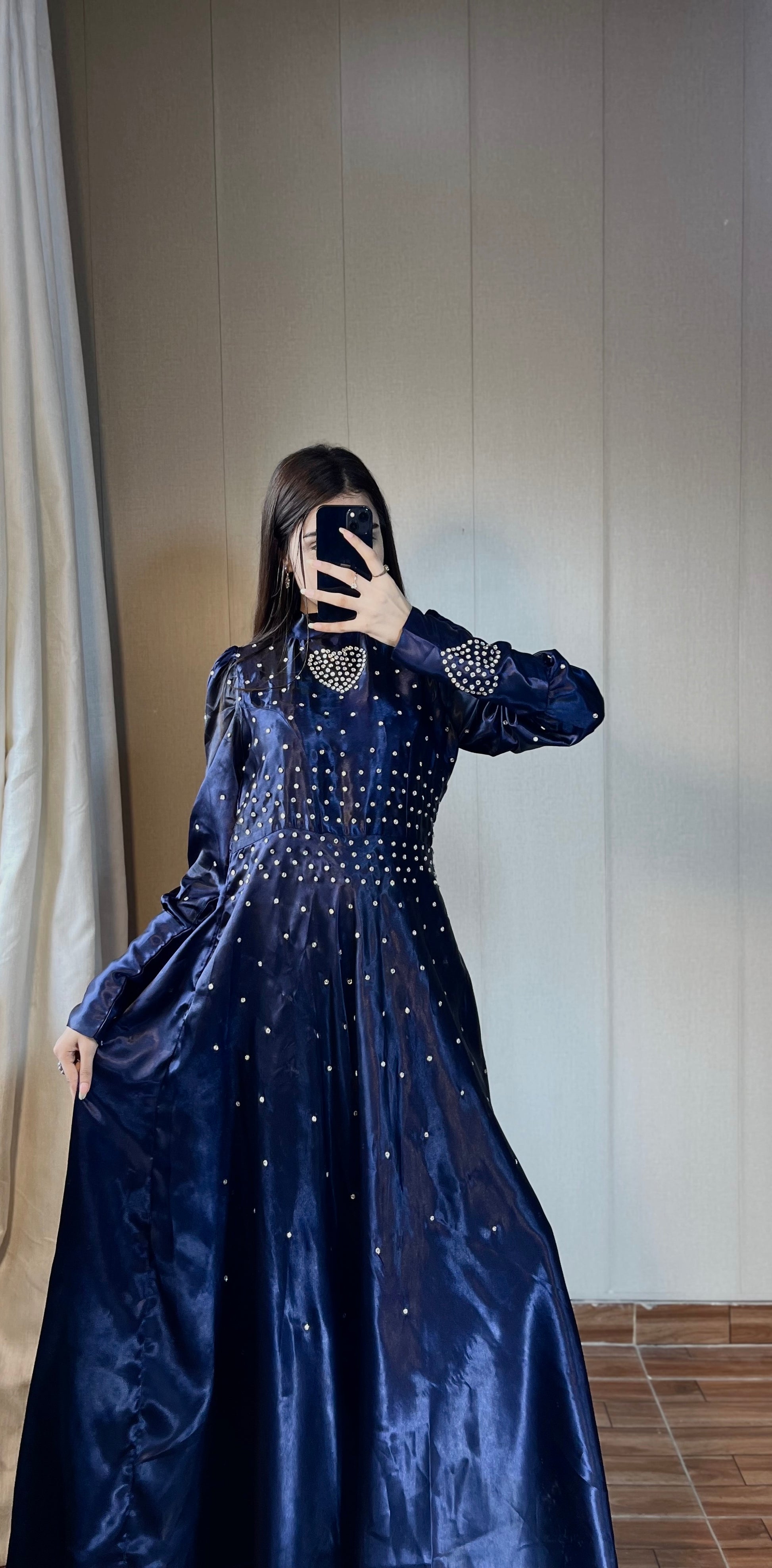 Blue Crystal Work Premium Satin Maxi