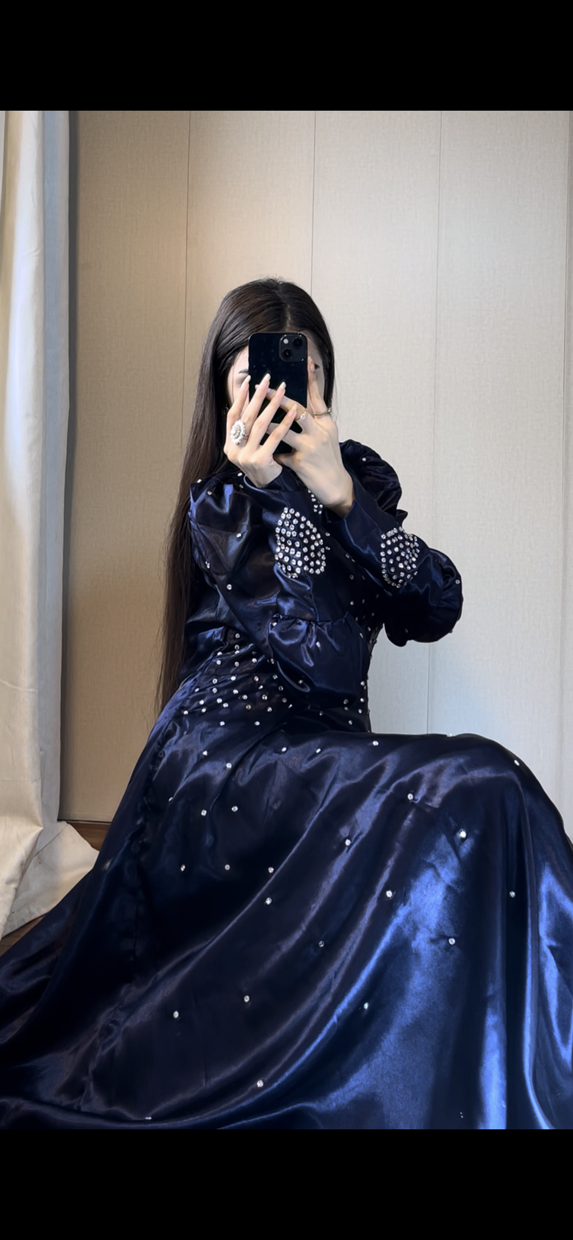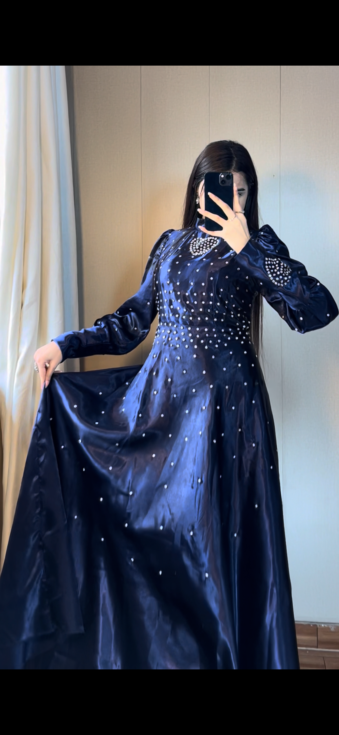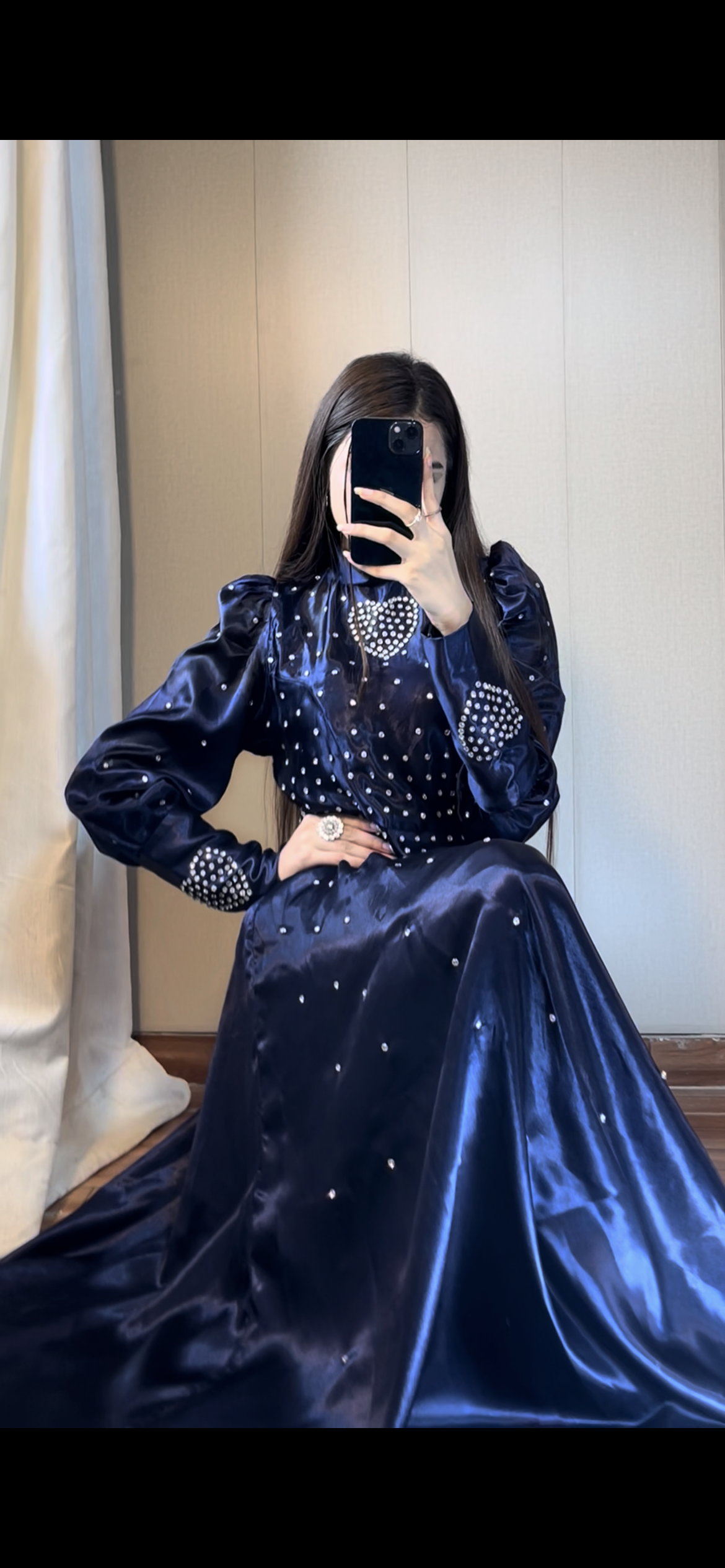 Blue Crystal Work Premium Satin Maxi