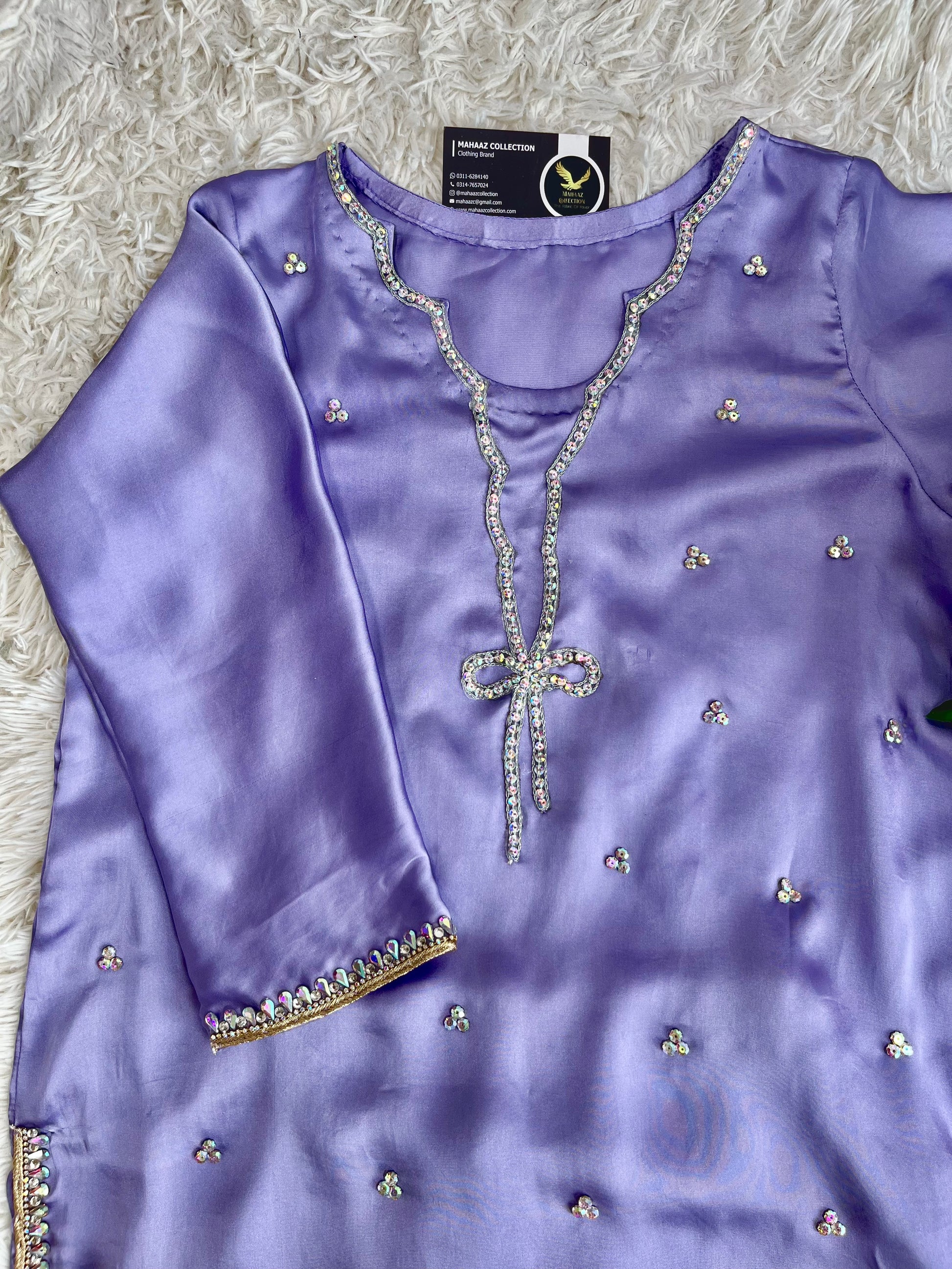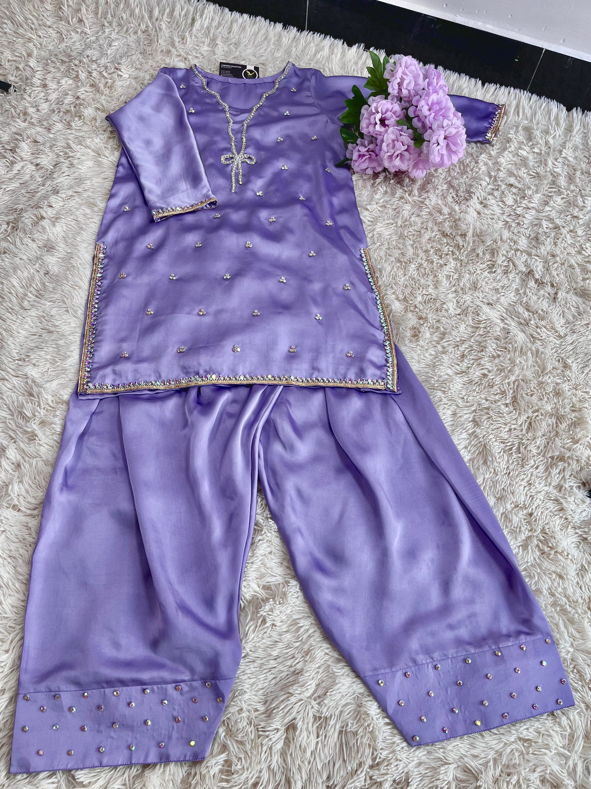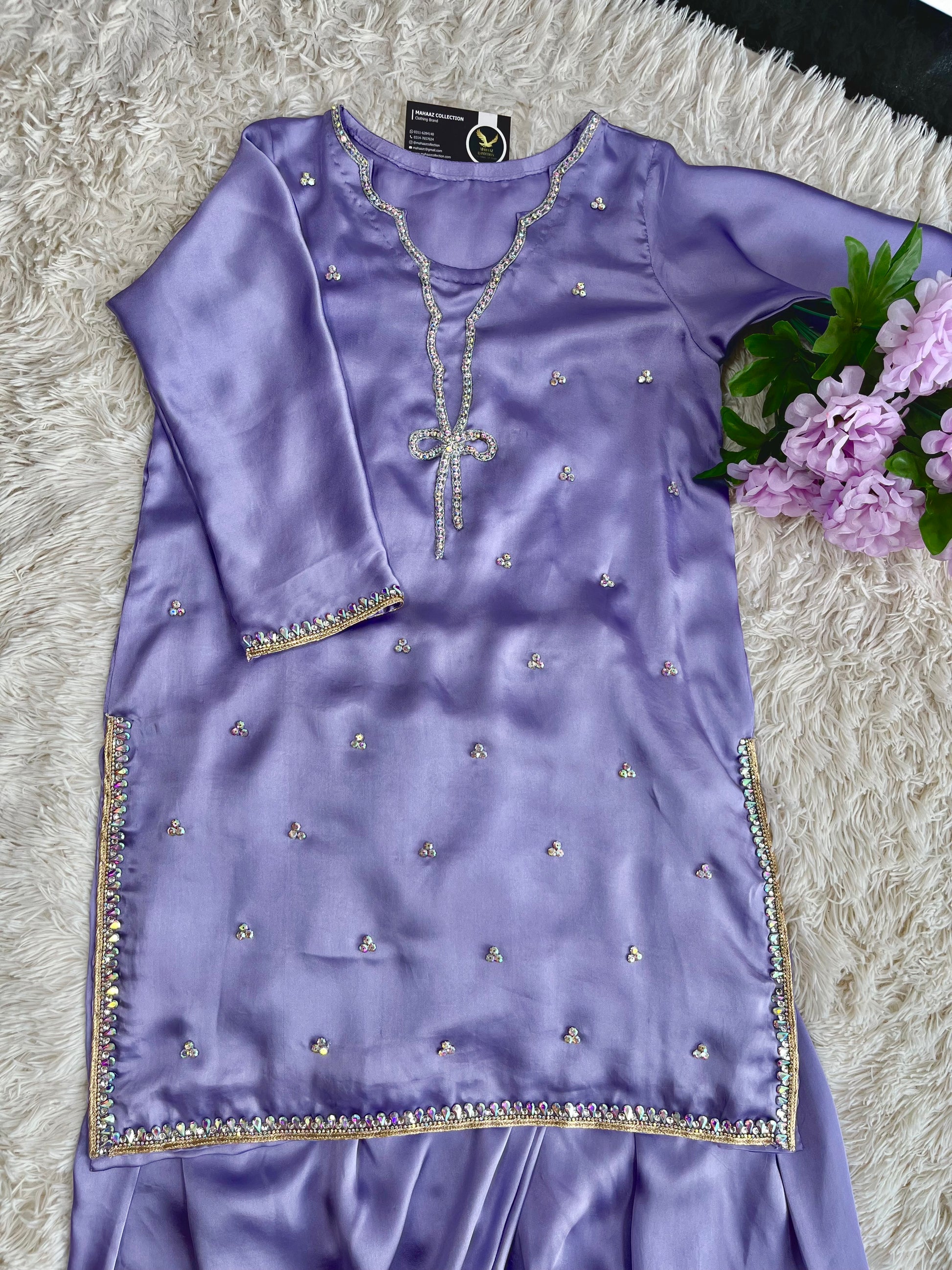 Lavender silk with fairytale shimmer 🌸 Minimalist detailing, dreamy Farshi shalwar, and the elegance you deserve this shadi season. 💜