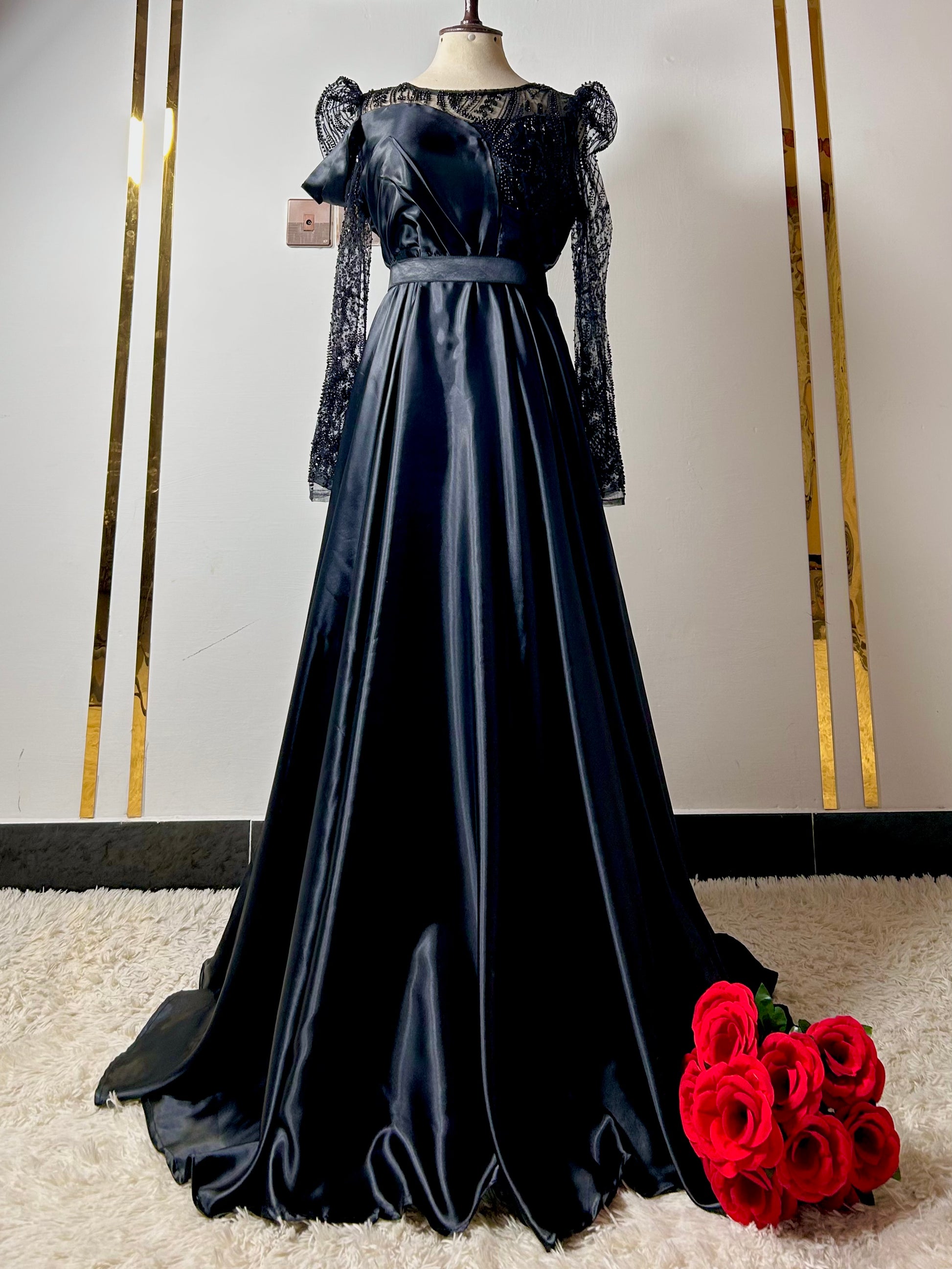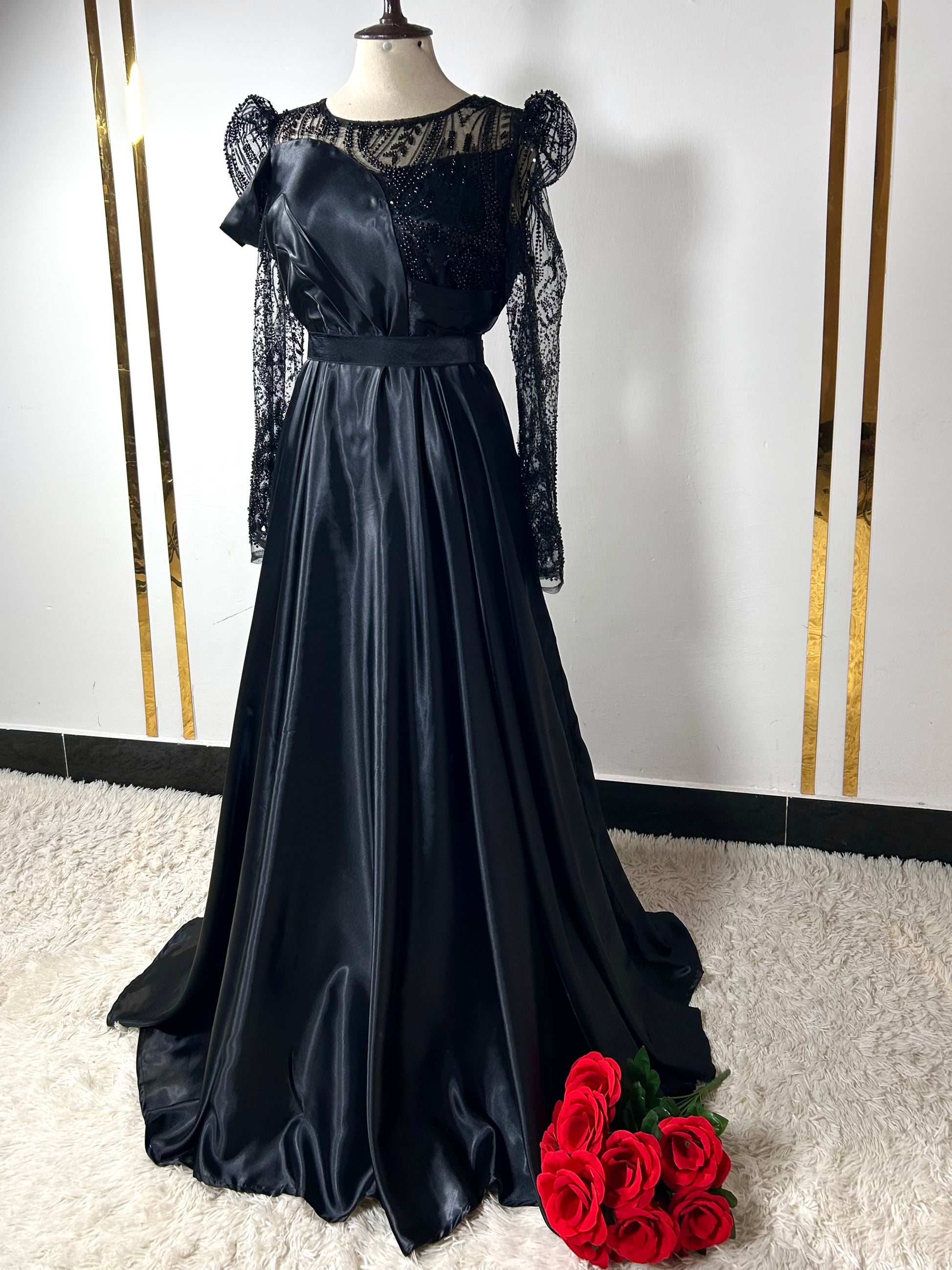Pure Black Satin Silk Maxi